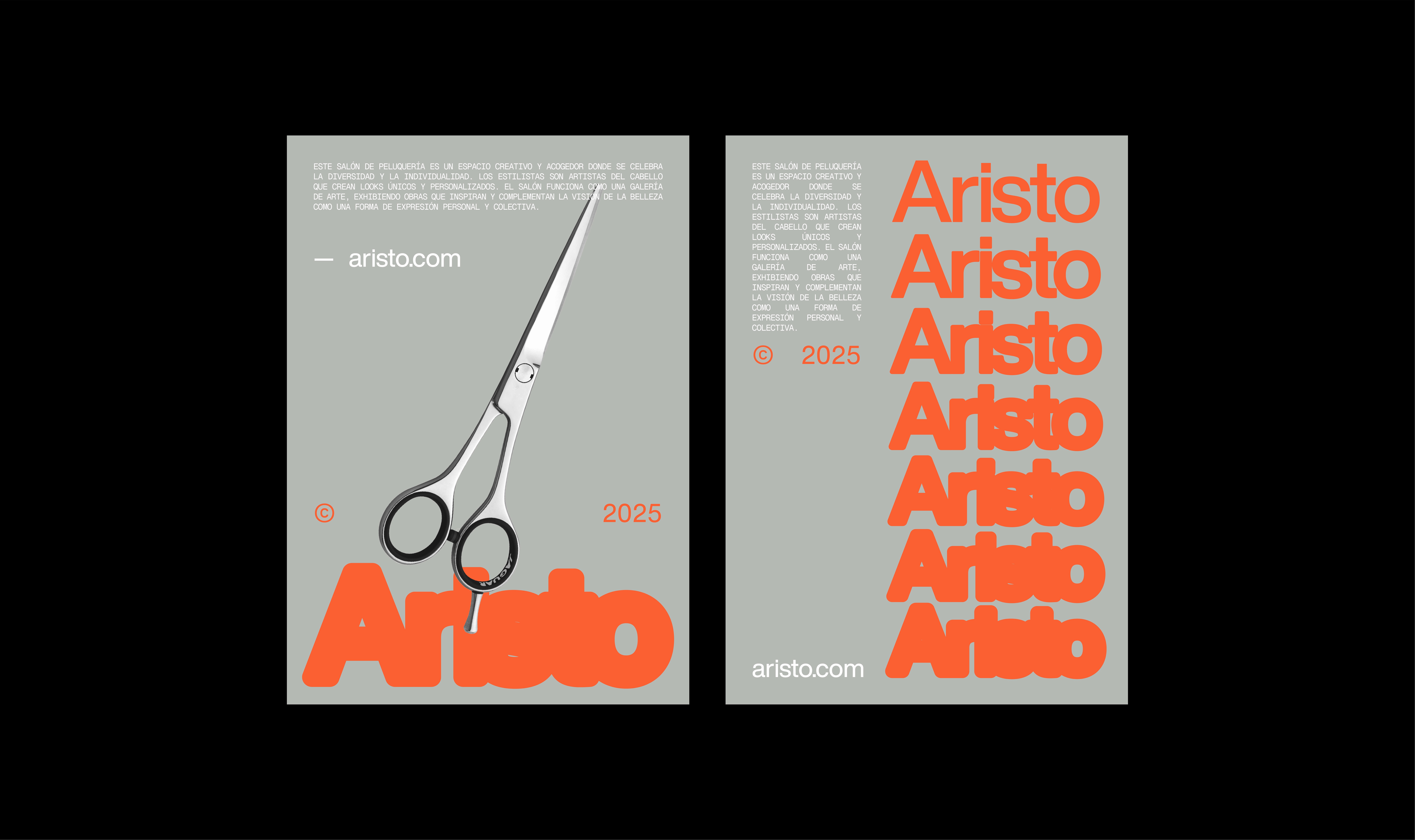 Para Aristo, la creación de marca se centró en un logotipo versátil y dinámico que refleja los valores esenciales del salón: diversidad, inclusión, creatividad y libertad. La combinación cromática entre un gris sobrio y un naranja enérgico genera un equilibrio visual entre sofisticación y rebeldía, dando lugar a una identidad sólida y con carácter.
