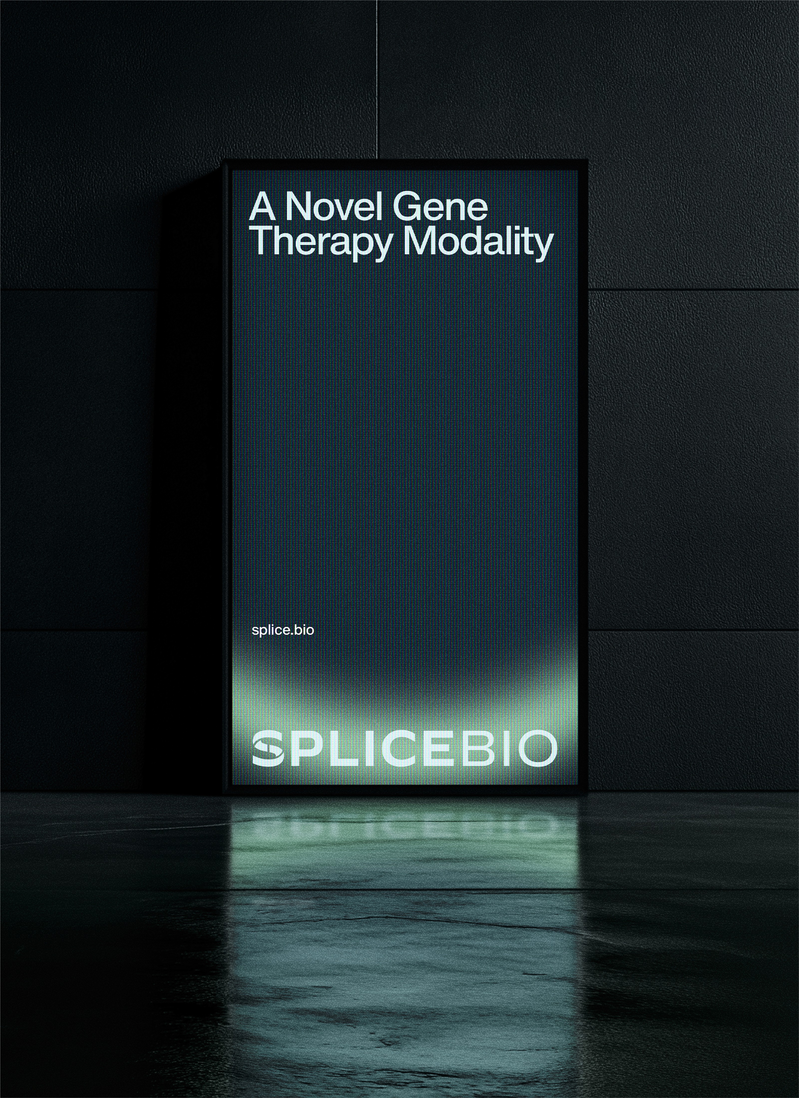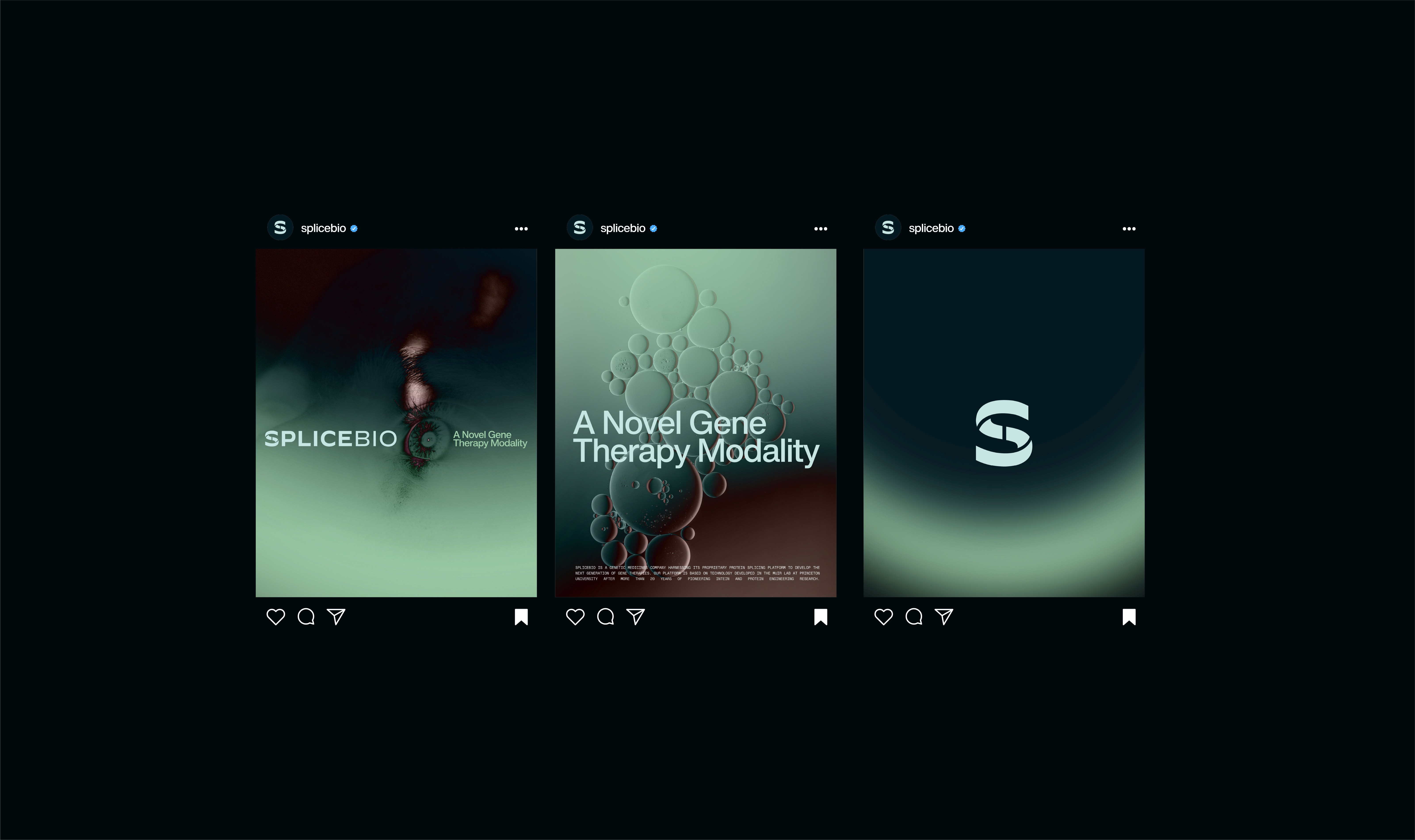 La identidad visual de SpliceBio se inspira en la alteración visual provocada por la enfermedad de Stargardt, donde una mancha central difumina la visión. Este concepto se traslada gráficamente mediante efectos de desenfoque y elementos visuales que simulan dicha percepción. La mancha se convierte en el núcleo del diseño, dando forma a composiciones coherentes que reflejan el compromiso de la empresa con la investigación en terapias génicas para enfermedades oculares.